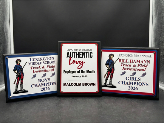 Yes! We are a trusted local supplier for school districts, youth sports leagues, and regional tournaments. We frequently create custom awards for local track and field invitationals, basketball tournaments, wrestling meets, and academic banquets across Saline County and neighboring districts (like Santa Fe, Lexington, Mid‑Missouri, Carrollton, Higginsville, Kansas City, Columbia, Fayette, MO).